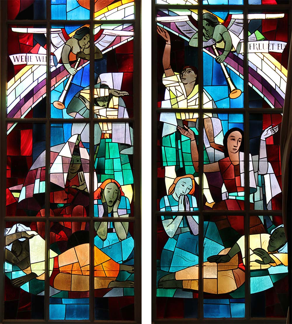 Für die Lukaskirche schuf Louis Moilliet auch 14 Seitenlichtfenster. Diese haben ornamentalen Charakter.