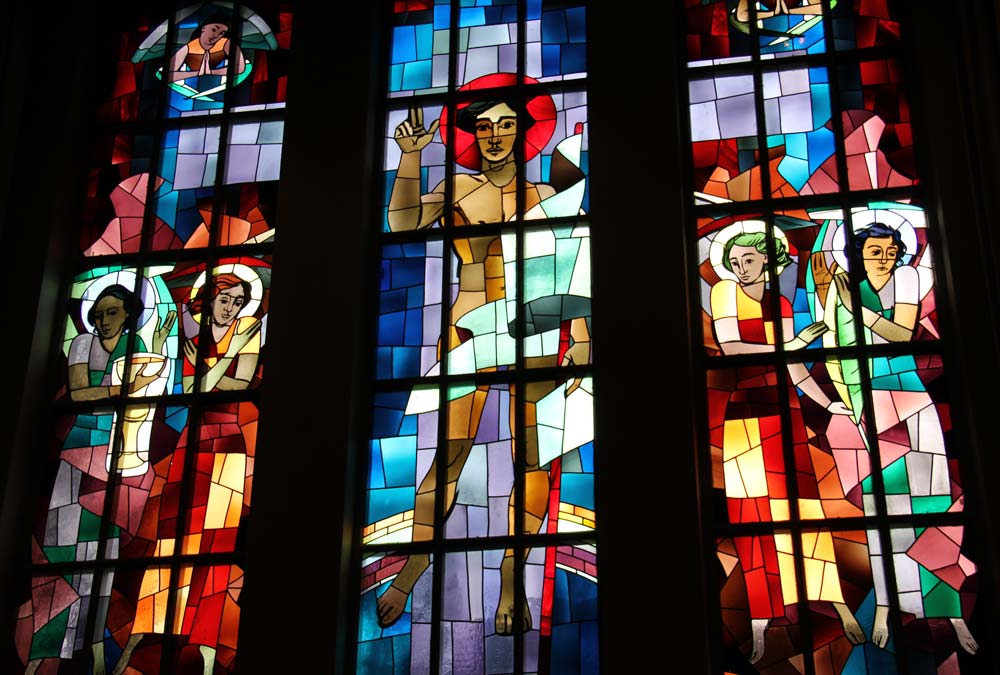 Im Innern der Kirche sind vor allem die Glasmalereien sehenswert. Sie wurden von Louis Moilliet entworfen.