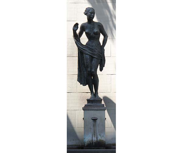 Ein etwas zurückgesetztes Glanzstück ist die überlebensgrosse Bronzefigur des bekannten Zürcher Bildhauers Hermann Haller auf der Brunnenanlage in der Ecke zwischen dem Nationalbankgebäude und der Hofmauer an der Seidenhofstrasse. Sie wurde 1925 gegenüber dem Westflügel des Hotels Du Lac, dem ehemaligen Seidenhof, errichtet und stellt eine badende Frauenfigur dar („Baigneuse“). Die Brunnenanlage kostete damals 22‘000 Franken, die Bronzefigur allein 13‘000 Franken.