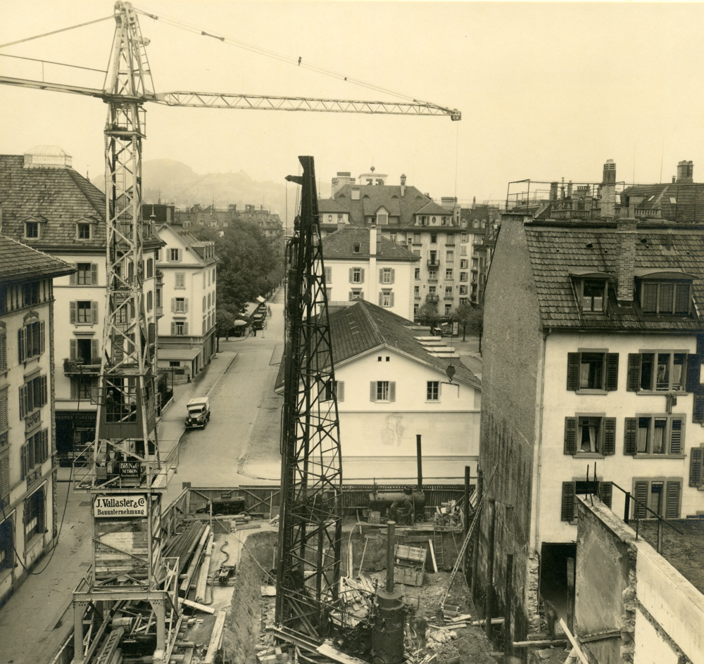 Waren wir Kleinen nicht in dem von den vier Häusermauern eingefriedeten Raum durch irgend etwas «Wichtiges» in Anspruch genommen, dann wechselten wir mit Vorliebe hinüber nach dem Zentralmätteli, das heißt auf den Platz, wo jetzt die Lukaskirche steht, nebenan ins Vögeligärtli oder schließlich auf das alte Gasareal. Dort war überall Luft, Licht und Raum zum Austoben, ja, auf dem Zentralmätteli gastierte einige Zeit sogar jeweils die Budenmesse, wo man sich beim Aufbau des Rößlispiels oder des Kinematographen Leilich nützlich machen konnte, denn ehe man in Häusern Kinos einrichtete, kam diese Erfindung der staunenden Menschheit auf den Rummelplätzen vor Augen.