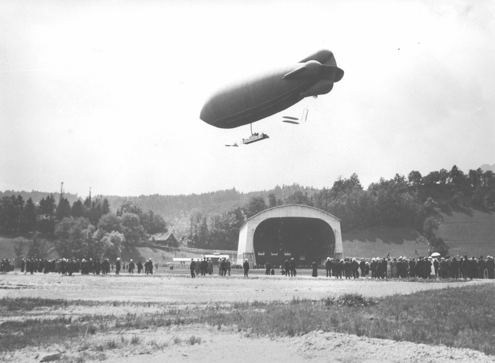 Zeppelin «Astra» über der Luftschiffhalle im Tribschenmoos Luzern.