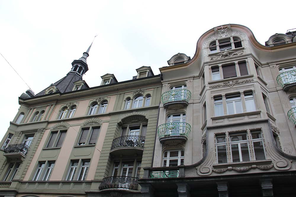 Die verschnörkelten, teilweise überladenen Prunkfassaden übernahmen historisierende Elemente von Klassizismus, Neurenaissance über Neugotik bis Neubarock. Auf engstem Raum ist hier noch heute „die ganze Stilgeschichte Europas“ abzulesen, so Paul Rosenkranz im neuen Stadtführer „Luzern entdecken“ von 2016, „mit interessanten Einflüssen des Jugendstils aus der Zeit von 1890 bis 1914“.