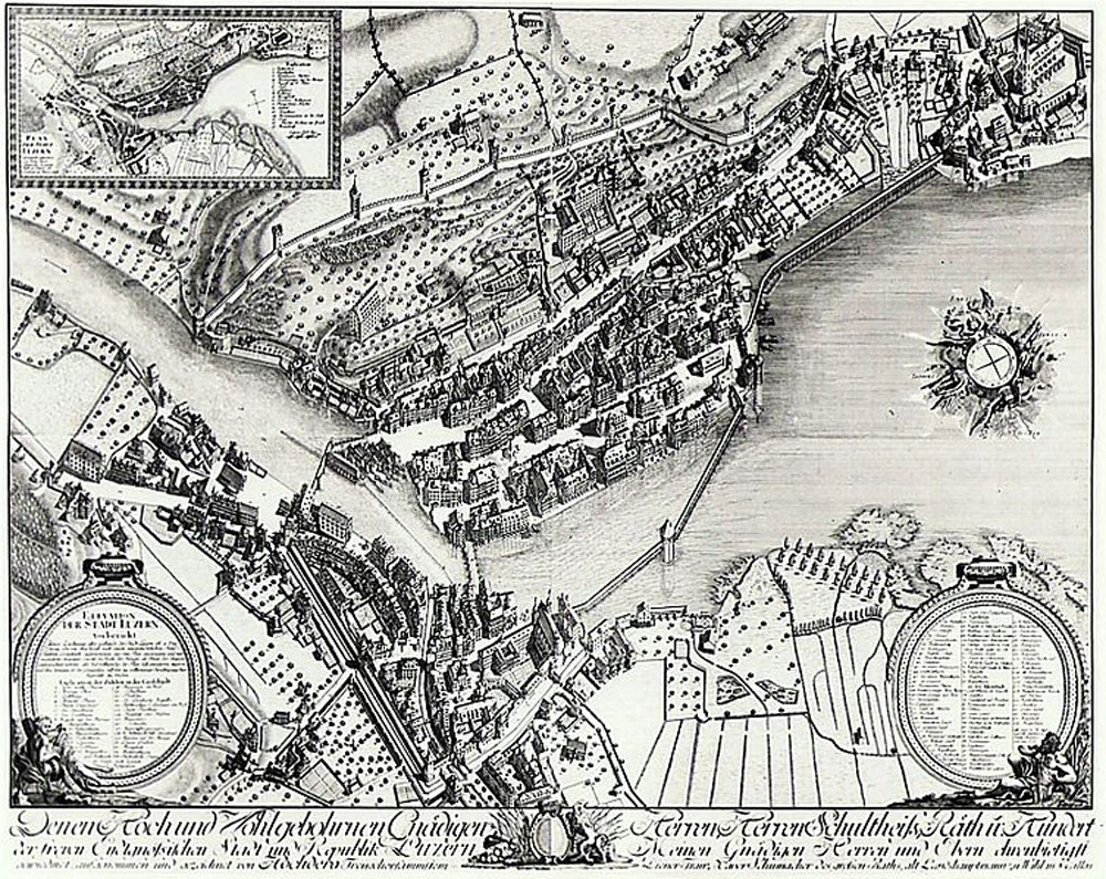 Dafür floss der Reichtum der führenden Familien in den Bau von Prunkbauten in der Stadt und in der umgebenden Landschaft. Die engen Beziehungen zu Italien und Frankreich, die sich aus Jahrhunderten des Söldnerhandels ergaben, fanden ihren Niederschlag in der Architektur: Renaissance, Barock und Rokoko prägten die Fassaden der Wohn- und Zunfthäuser – und damit der Stadt.