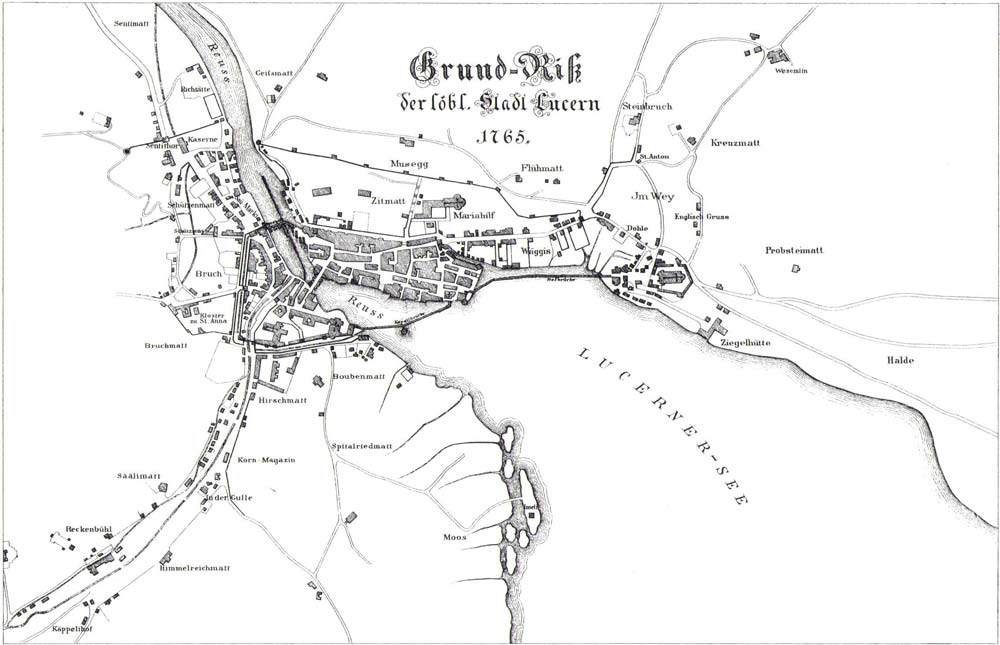 Entwicklung der Stadt Luzern in drei Stadtplänen